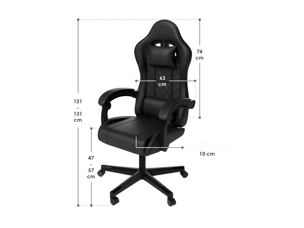 Tato kancelářská židle nabízí ergonomické pohodlí, nastavitelné opěradlo s polštářem na krk a záda a robustní konstrukci. Je výškově nastavitelná a má nosnost až 120 kg. Povrch židle je potažen snadno udržovatelnou umělou kůží, takže je ideální do kanceláře nebo na hraní her. Díky individuálně nastavitelnému opěradlu a optimální výšce sedáku si židličku nastavíte tak, abyste si zajistili pohodlí a komfort při delším sezení. Nylonová základna a vysoce kvalitní materiály poskytují bezpečnou oporu i pro větší a těžší uživatele. K čištění použijte měkký, vlhký hadřík no nepoužívejte agresivní ani abrazivní čistící prostředky.Technické specifikace: