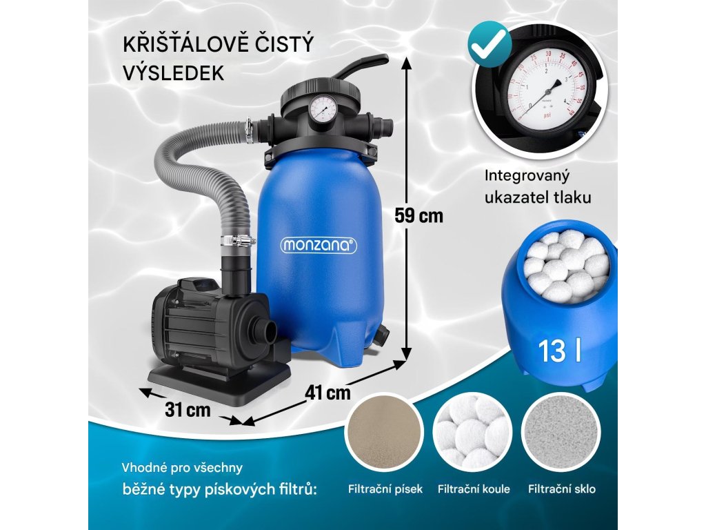 Pískový filtrační systém 10 200 l/h s testerem vody