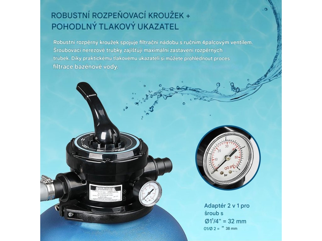 - Vhodné pro až 27 kg filtračního písku