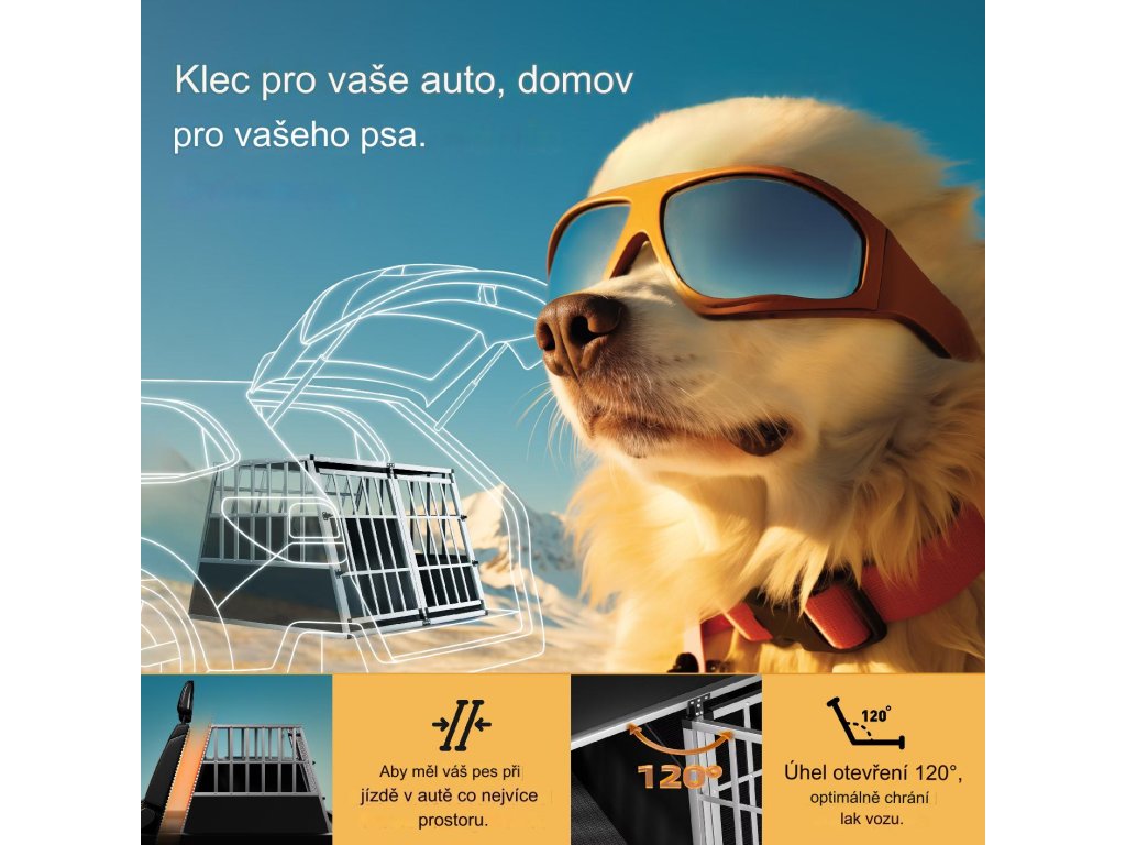 Díky konstrukci ve tvaru lichoběžníku je přepravka snadno umístitelná. Robustní plastové rohy zároveň snižují riziko zranění psa nebo poškození při manipulaci s přepravkou. Tato přepravka, vyrobená z odolného hliníku a MDF desek, se vyznačuje pevnou stavbou a jednoduchou montáží. Na údržbu postačí vlhký hadřík, čímž se jeho čištění stává rychlým a pohodlným. Přepravka pro psa je vybavena odnímatelnou příčkou a 2 uzamykatelnými dveřmi. To znamená, že je vhodná buď pro 2 menší psy nebo pro jednoho velkého psa. Díky mřížkovým vzpěrám má váš pes neustálý přísun čerstvého vzduchu, což mu poskytne vyšší komfort a pocit bezpečí.