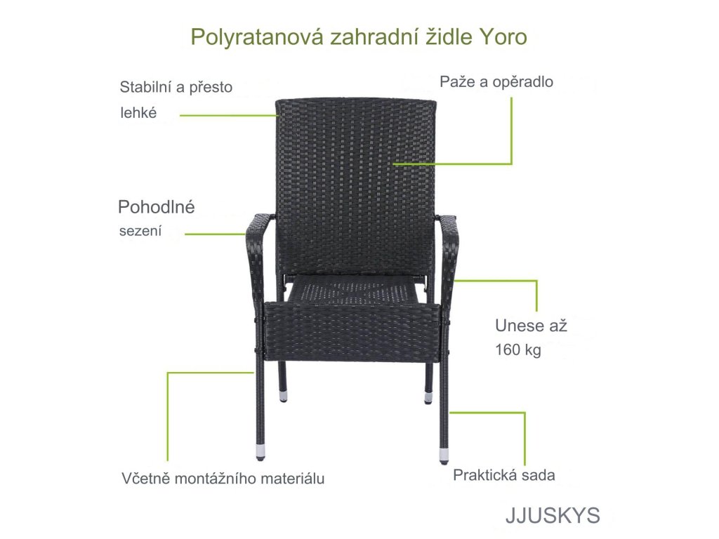 - Materiál židle: polyratan, ocel s práškovým nástřikem