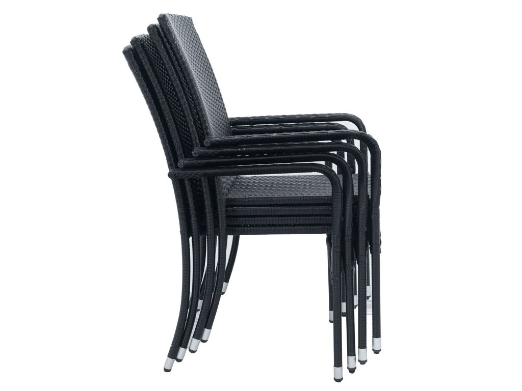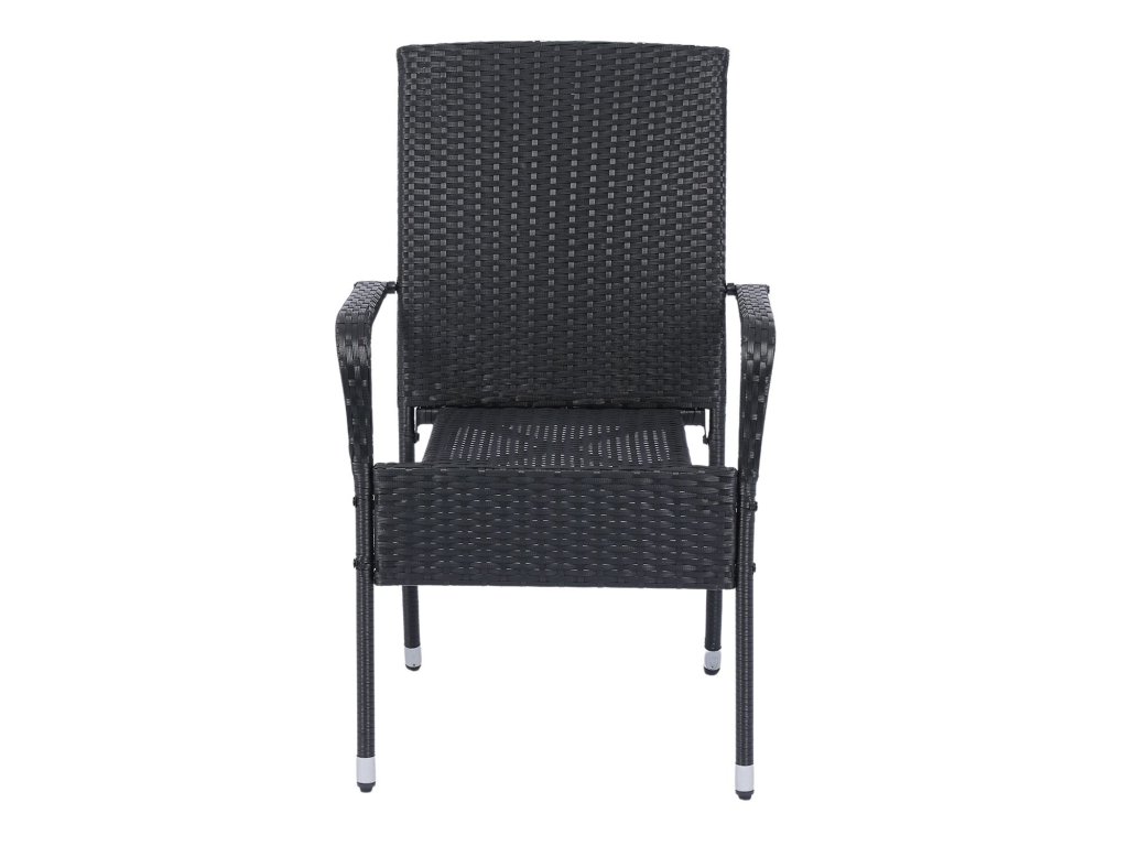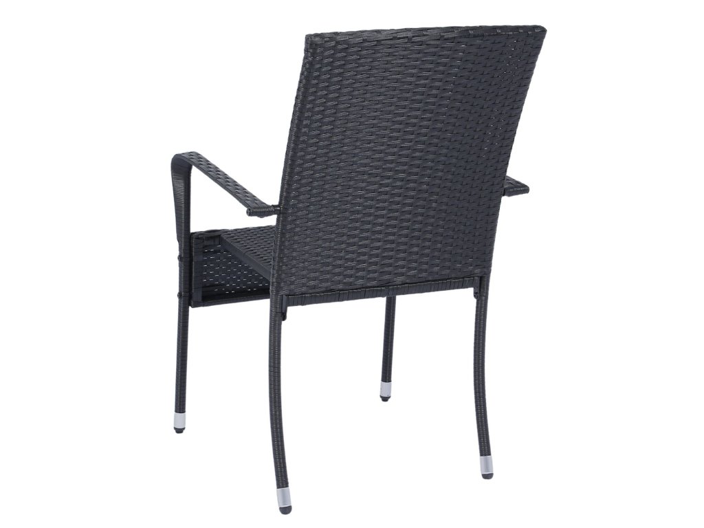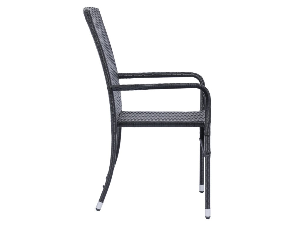 Sada 4 ks polyratanových zahradních židlí je stohovatelná a vybavena područkami. Konstrukce židlí je vyrobena z robustní oceli s práškovým nástřikem - ideální pro venkovní použití. Pro vyrovnání nerovností je výška nožiček vpředu nastavitelná. Díky elastickému polyratanu jsou židle obzvláště pohodlné – dokonce i bez podušek. Každá židle má nosnost až 160 kg, přesto je velmi lehká.