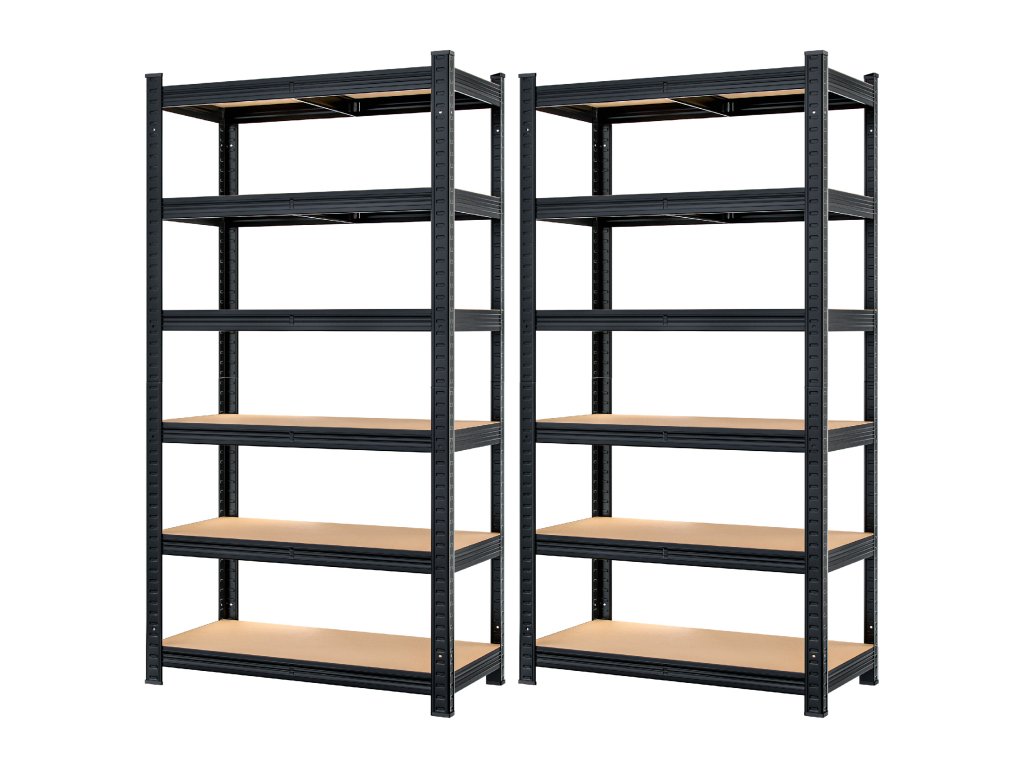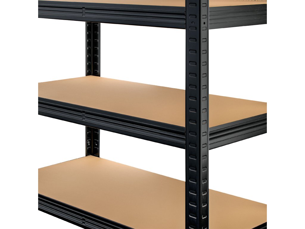 Sada 2 regálů se 6 policemi poskytuje dostatek úložného prostoru a umožňuje využít výšku místnosti bez plýtvání prostorem. Police jsou vhodné pro ukládání nářadí, zásob, sportovního vybavení a krabic a kontejnerů různých velikostí. Robustní materiály zajišťují stabilitu i při velkém zatížení.