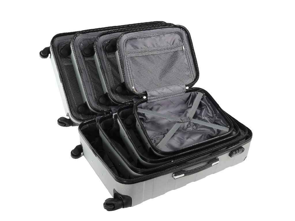 Sada 4 cestovních kufrů nabízí čtyři praktické velikosti, takže si vždy můžete vybrat ten správný kufr na služební cestu nebo rodinnou dovolenou. Pevný plášť z ABS plastu chrání obsah před nárazy a namáháním během přepravy. Vnitřní uspořádání s přihrádkami a elastickými pásky pomáhá udržet věci v pořádku a vaše věci na místě, i při delších cestách.