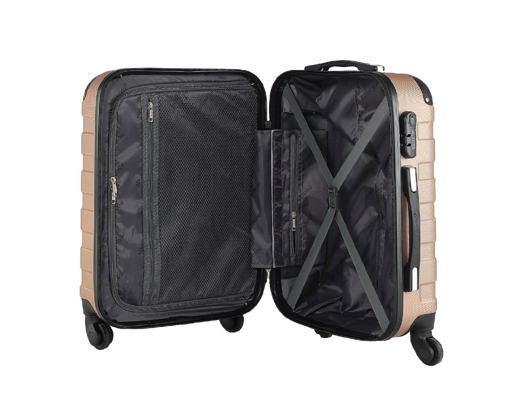 Sada cestovních kufrů je navržena pro bezpečné a přehledné uložení vašich věcí na cestách. Díky různým velikostem kufrů si vždy můžete vybrat ten správný pro víkend, služební cestu nebo dlouhou dovolenou. Pevné tělo z ABS plastu poskytuje ochranu proti nárazům a zároveň se snadno manipuluje. Vnitřní popruhy pomáhají udržet oblečení a další předměty bezpečně na místě.