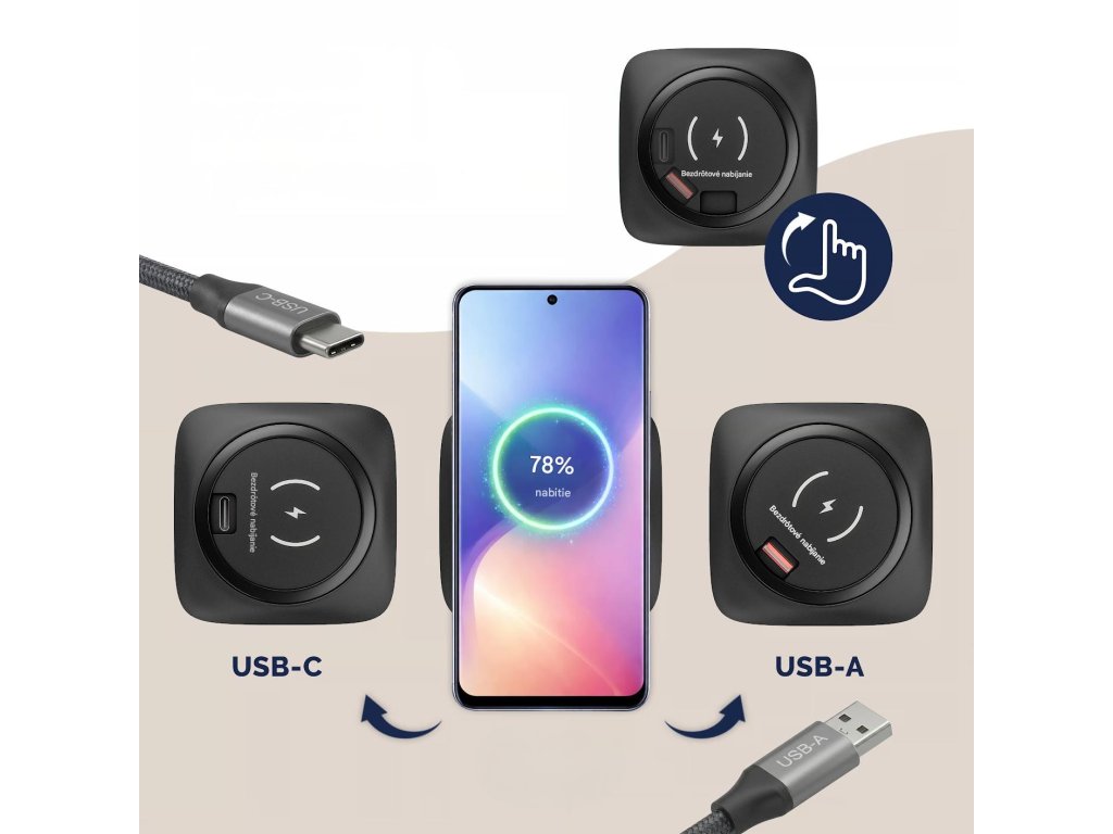 - Bezdrátové nabíjení a integrované USB porty